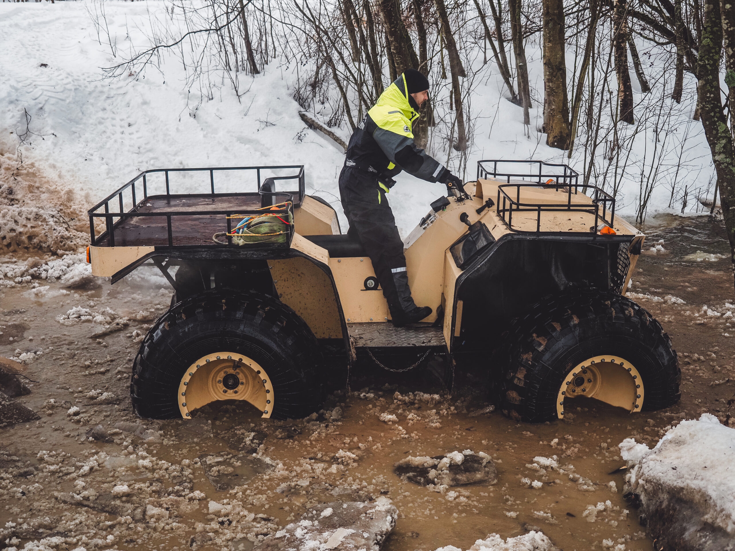 Для того чтобы приобрести надежную технику, которая сможет работать в условиях бездорожья, предлагаем Вам купить снегоход-болотоход на базе квадроцикл с шинами низкого давления. Этот вариант идеально подходит как для охоты, так и для рыбалки. Выбирая квадроцикл-снегоход-болотоход для охоты, рыбалки, путешествий можно воспользоваться удобной системой оплаты и доставки. По всем вопросам, касающимся характеристик товара, его доставки, а также вариантов оплаты и доставки в другой город РФ, вы всегда можете обратиться к нам по телефону или написать письмо. Наш снегоболотоход – это уникальный вездеход, предназначенный для езды в любых погодных условиях, по любой местности