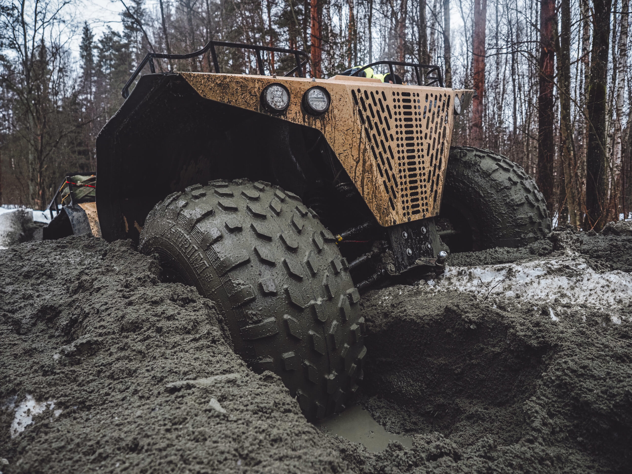 Снегоболотоход. Это отечественное изобретение, представляющее собой уникальную автотехнике на колесах большого радиуса и низкого давления, позволяющих снегоболотоносному автомобилю не проваливаться на снегу, уверенно двигаться по любому грунту и даже плавать. В 70-х годах прошлого века на Северном полюсе была создана снегоходная техника, которая могла бы использоваться для передвижения по снегу. Благодаря изобретению можно легко перемещаться по мягкому снегу, не тонуть в полыньях и не проваливаться в сугробы. За последние годы были усовершенствованы все технические характеристики современных вездеходов данного типа на российском рынке. Вездеходы успешно используют для передвижения в труднодоступных местах. Они могут преодолевать труднопроходимые участки дороги, так как имеют большую проходимую ширину по сравнению с обычным автомобилем. Двигатели позволяют развивать скорость до 100 км/ч. У этих вездеходов имеется большой список достоинств. В первую очередь, это высокая проходимость, высокая маневренность, хорошая управляемость, наличие широкого рабочего колеса, что позволяет им обладать хорошим сцеплением с любой поверхностью. При этом, современные колесные вездеходы могут совершать продолжительные поездки в любое время года. Они не боятся самых сильных морозов и любых условий погоды. При проезде по местности, покрытой льдом, они не попадают в промоины, а уверенно преодолевают трещины, образовавшиеся в ходе замерзания, и просто не испытывают дискомфорта. Для этой техники не нужно особенно много топлива, так что она наиболее рентабельна в использовании. Она потребляет мало горючего для движения, что также выгодно.